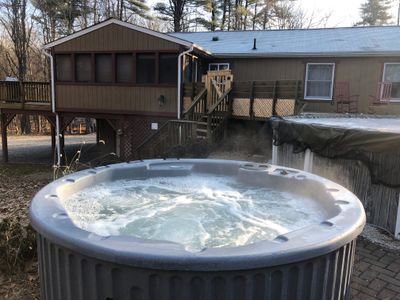 The house was beautiful with very comfortable bedrooms, and a great kitchen for all the at-home cooking we did. The enclosed deck was so nice for bundling up and eating meals outside, and we had easy access to the rail trail directly behind the hous…