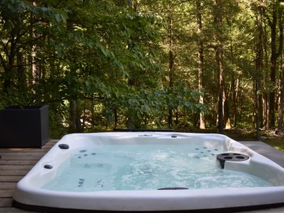A hot tub is on the deck, available year round and maintained regularly by our maintenance team.