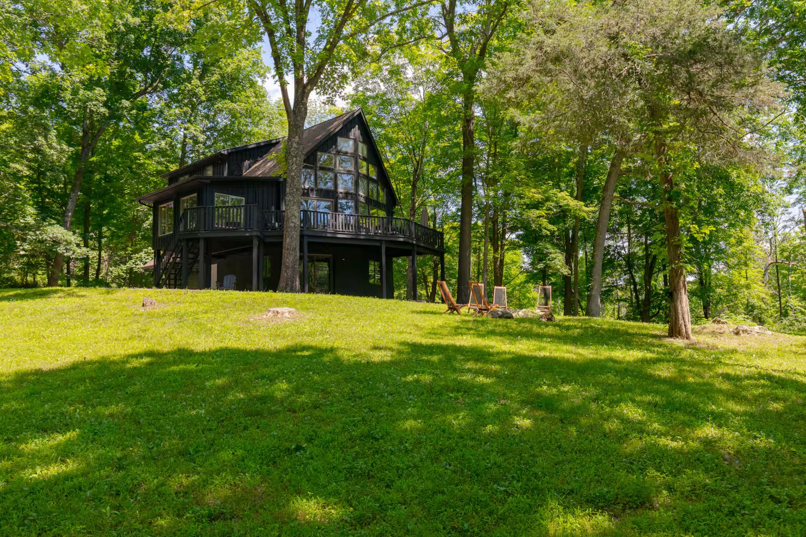 Escape to Rhinebeck Chalet, a serene and stylish nature retreat near Hudson Valley attractions. Cook in the open kitchen, spot wildlife through expansive windows, and dine al fresco on the wrap around balcony. Workstations, gym, firepit, and 6.5 acres of private wooded property await you! Explore Rhinebeck's charming town, just 15 minutes away. Discover eclectic shops, eateries, and gorgeous outdoor attractions. Your perfect upstate getaway starts at Rhinebeck Chalet.