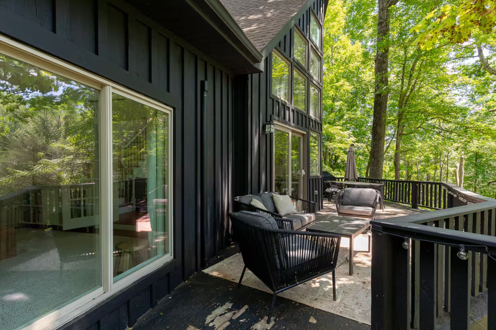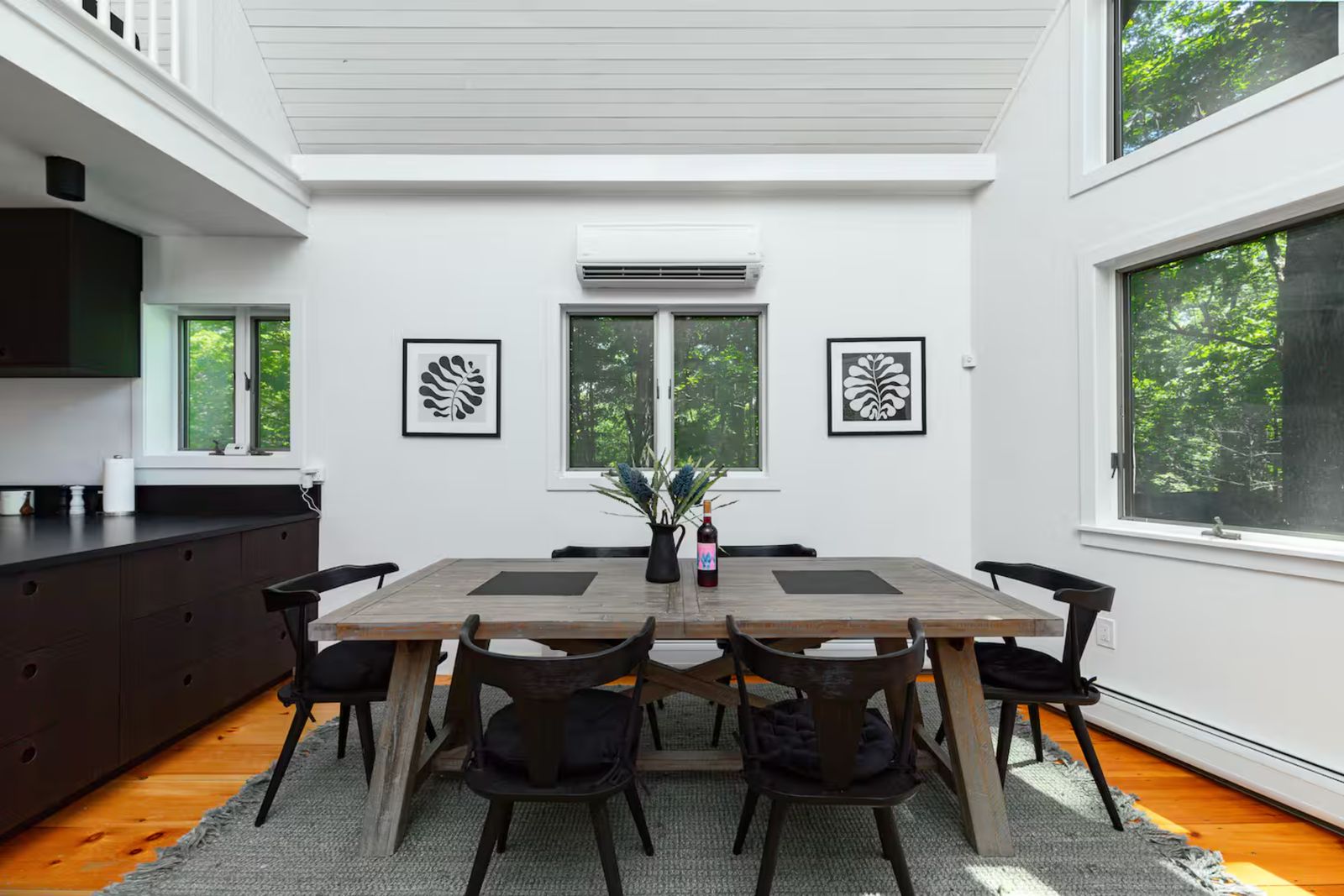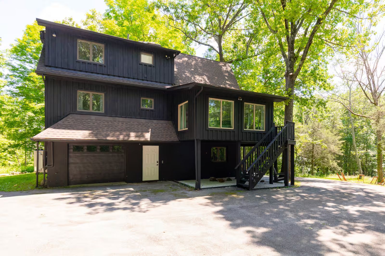 Escape to Rhinebeck Chalet, a serene and stylish nature retreat near Hudson Valley attractions. Cook in the open kitchen, spot wildlife through expansive windows, and dine al fresco on the wrap around balcony. Workstations, gym, firepit, and 6.5 acres of private wooded property await you! Explore Rhinebeck’s charming town, just 15 minutes away. Discover eclectic shops, eateries, and gorgeous outdoor attractions. Your perfect upstate getaway starts at Rhinebeck Chalet.