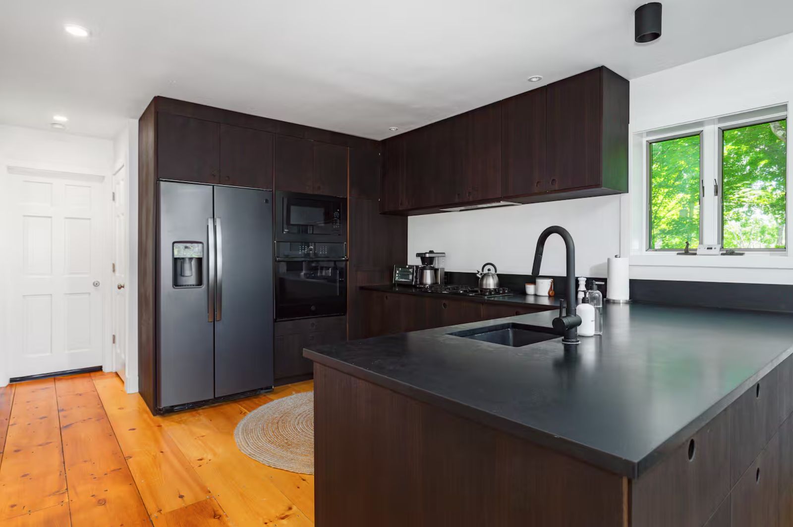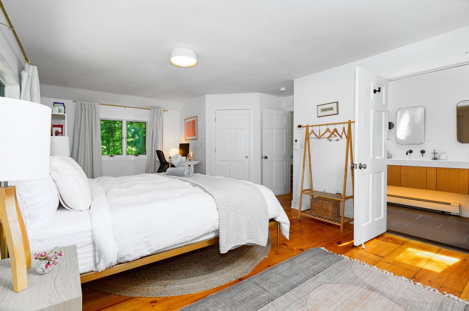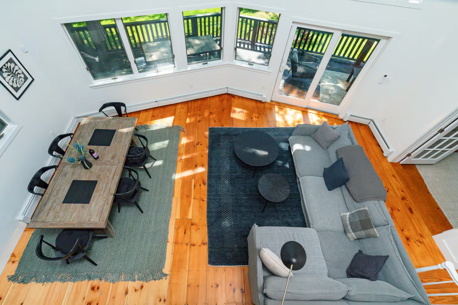 Escape to Rhinebeck Chalet, a serene and stylish nature retreat near Hudson Valley attractions. Cook in the open kitchen, spot wildlife through expansive windows, and dine al fresco on the wrap around balcony. Workstations, gym, firepit, and 6.5 acres of private wooded property await you! Explore Rhinebeck’s charming town, just 15 minutes away. Discover eclectic shops, eateries, and gorgeous outdoor attractions. Your perfect upstate getaway starts at Rhinebeck Chalet.