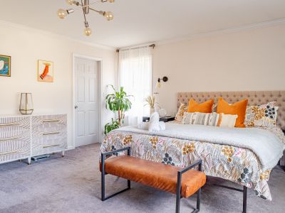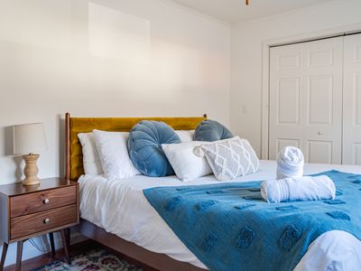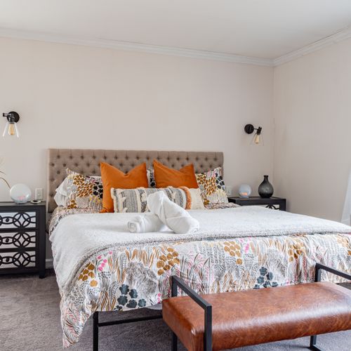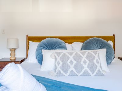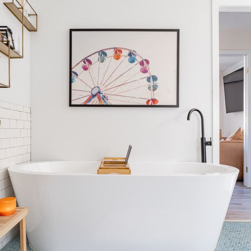 - Primary Bedroom: Cal King bed + en suite bathroom including luxurious shower and soaking tub