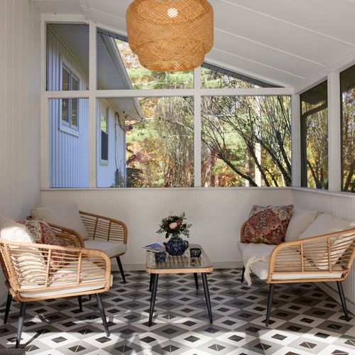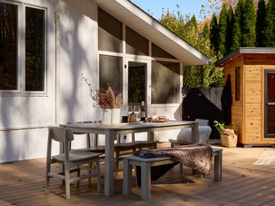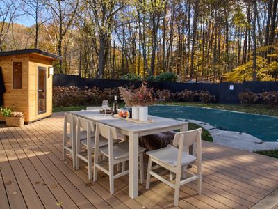 Rondout Retreat is a modern oasis, conveniently located between the bustling towns of New Paltz and Kingston. The home is completely renovated and features a variety of indoor and outdoor entertaining spaces.