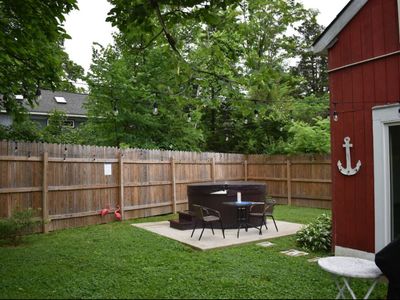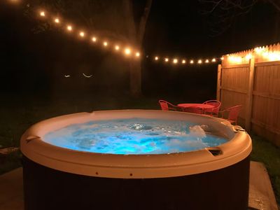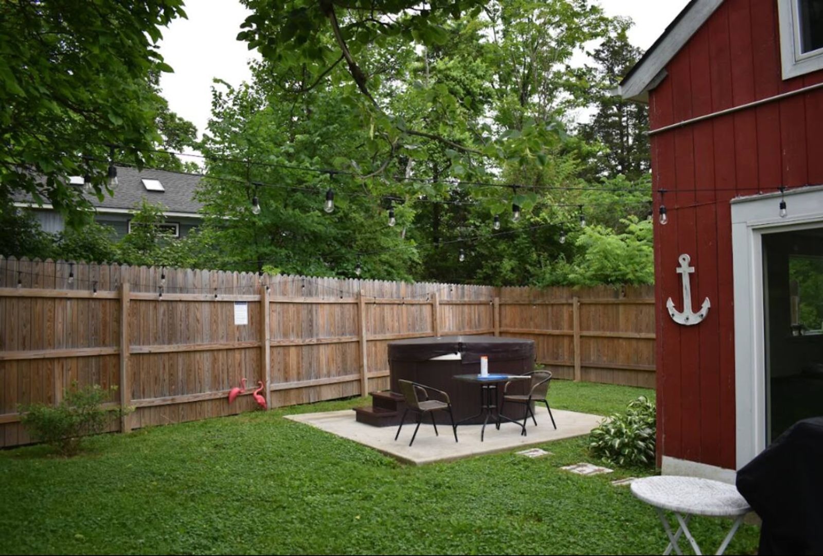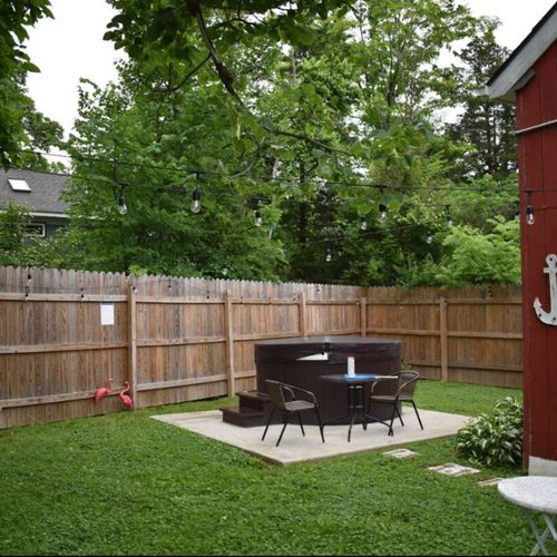 The house offers everything you need for year-round entertaining. There are charcoal and propane grills available as well as a bistro table for dining al fresco as well as a hot tub. The backyard area is perfect for enjoying the fire pit an outdoor games.