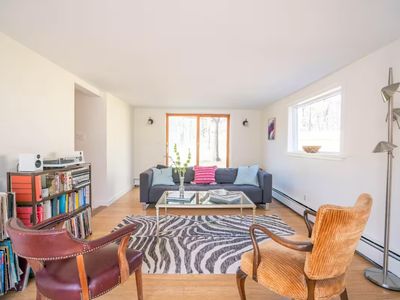 This little hideaway in the woods, is peacefully nestled away in Marlboro farm and wine country with beautiful hikes right out the front door, but not far from everything. Perfection. A screened in porch, hammock, fire pit somemany glorious windo…